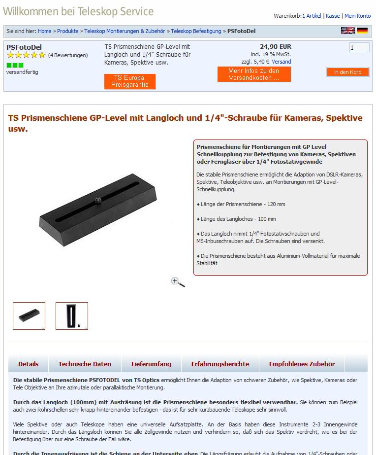 Abbildung 1: Vixen-Schiene bei Teleskop-Service (pCloud: TS-Service_Prismenschiene.jpg)