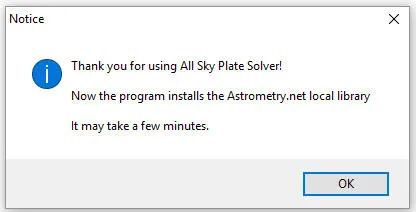 Neben der eigentlichen Software “All Sky Plate Solver” werden zwei Dinge benötigt: