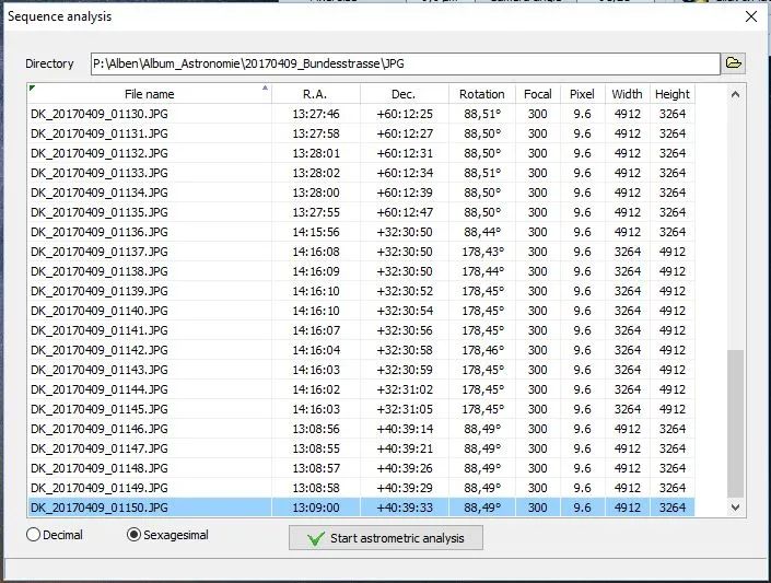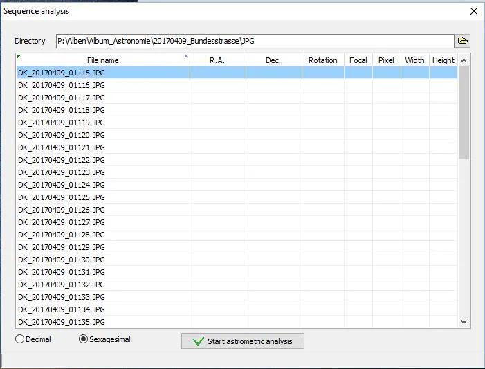 All Sky Plate Solver: Alle Bilder in einem Ordner = “Sequence Analysis”