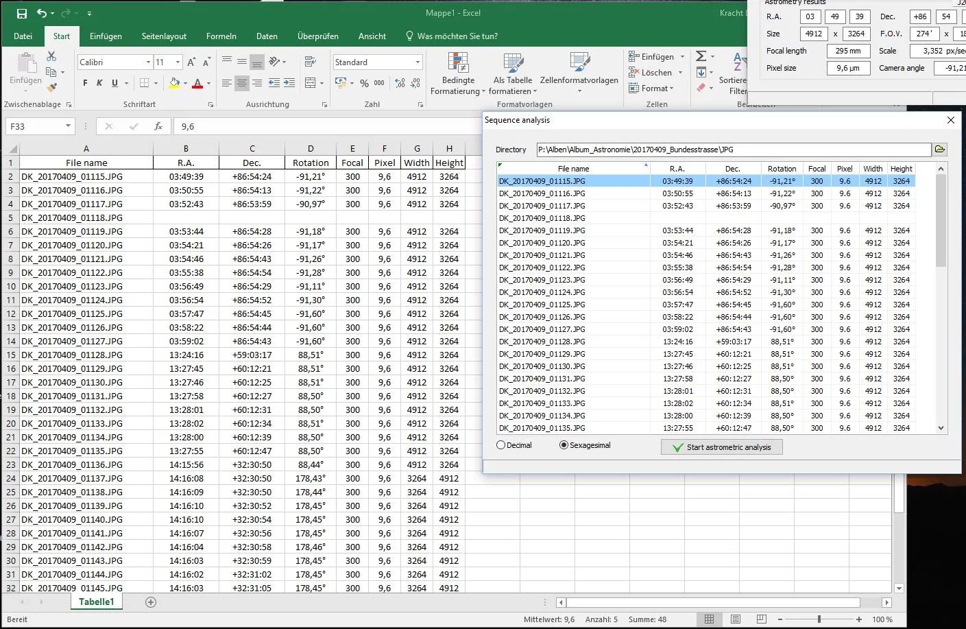Abbildung 12: Sequence Analysis in Excel (pCloud: AllSkyPlateSolver_Sequence-07.jpg)
