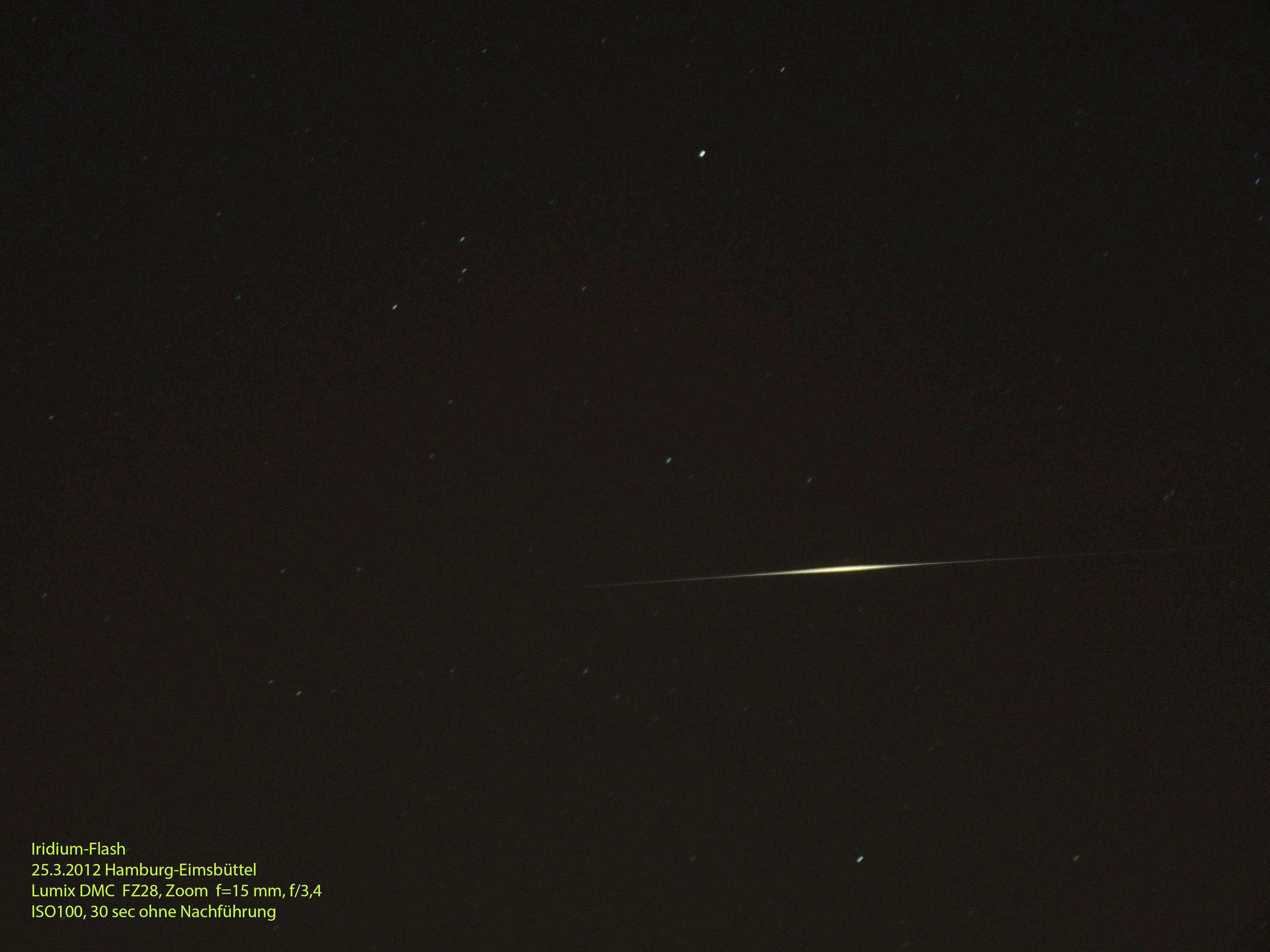 Abbildung 1: Ein Iridium Flash in Eimsbüttel (pCloud: DK_20120325_Bundsstrasse_IridiumFlash_beschriftet.jpg)