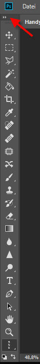 Die Werkzeugleiste erscheint am linken Rand vertikal von oben nach unten laufend. Wie alle “Leisten” (Fenster) kann man sie minimieren und wieder aufklappen:
