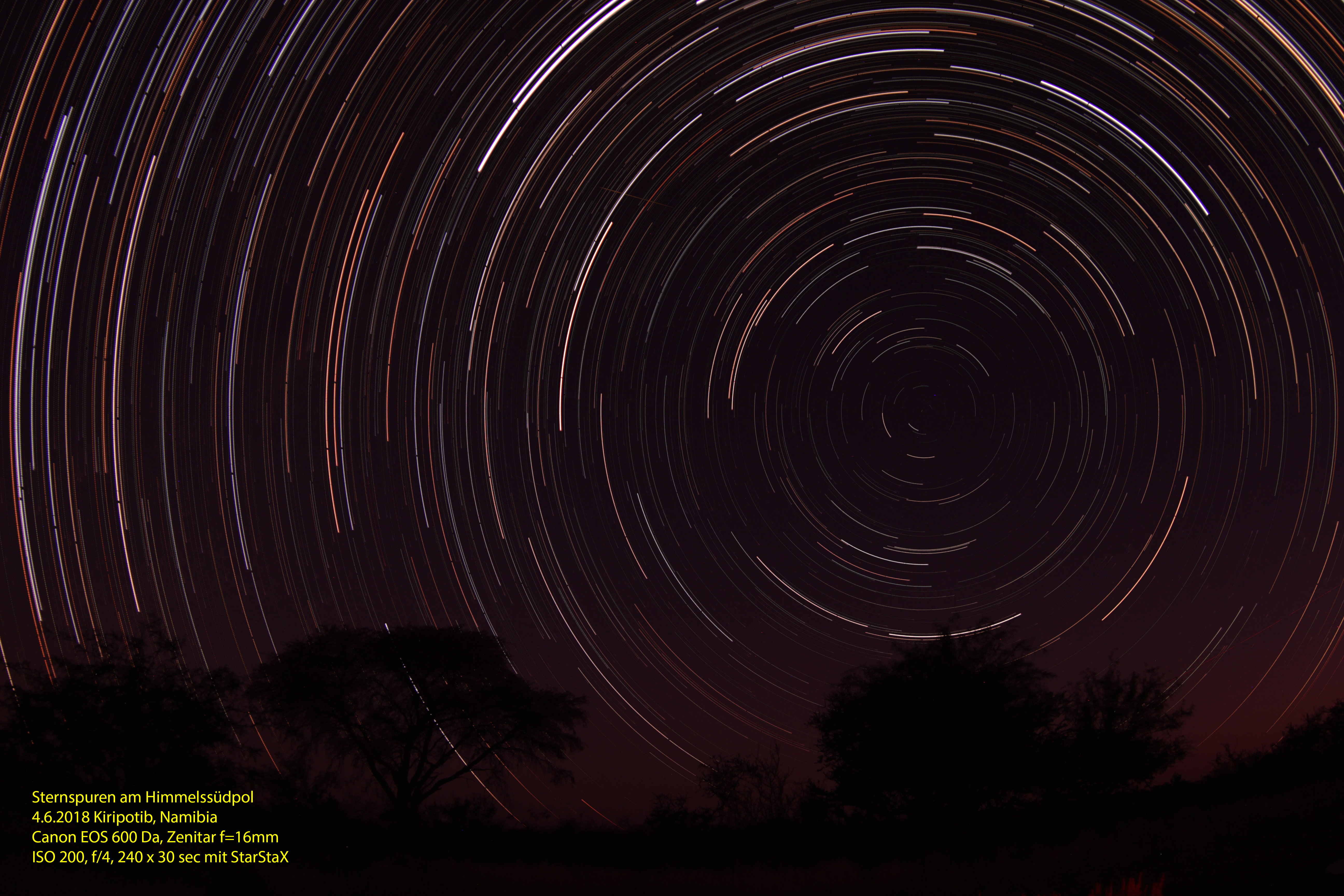 02.06.2018 Strichspuraufnahme vom Himmelssüdpol in Kiripotib, Namibia