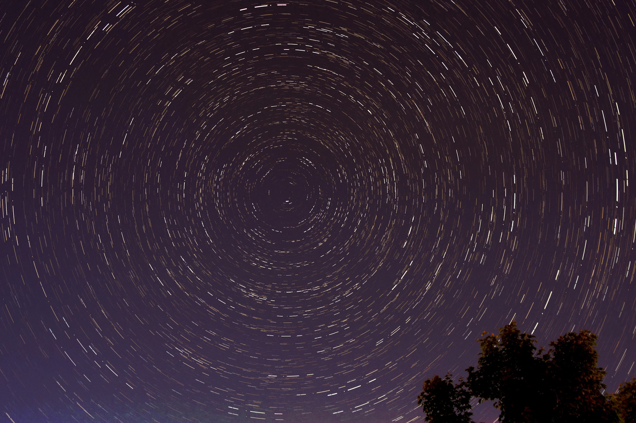 Ein schönes “Pretty Picture” kann man aber so von den sich kreisförmig bewegenden Sternen rund um den Himmelspol machen. Solche Stern-Strichspuren nennt man auch “Star Trails“.