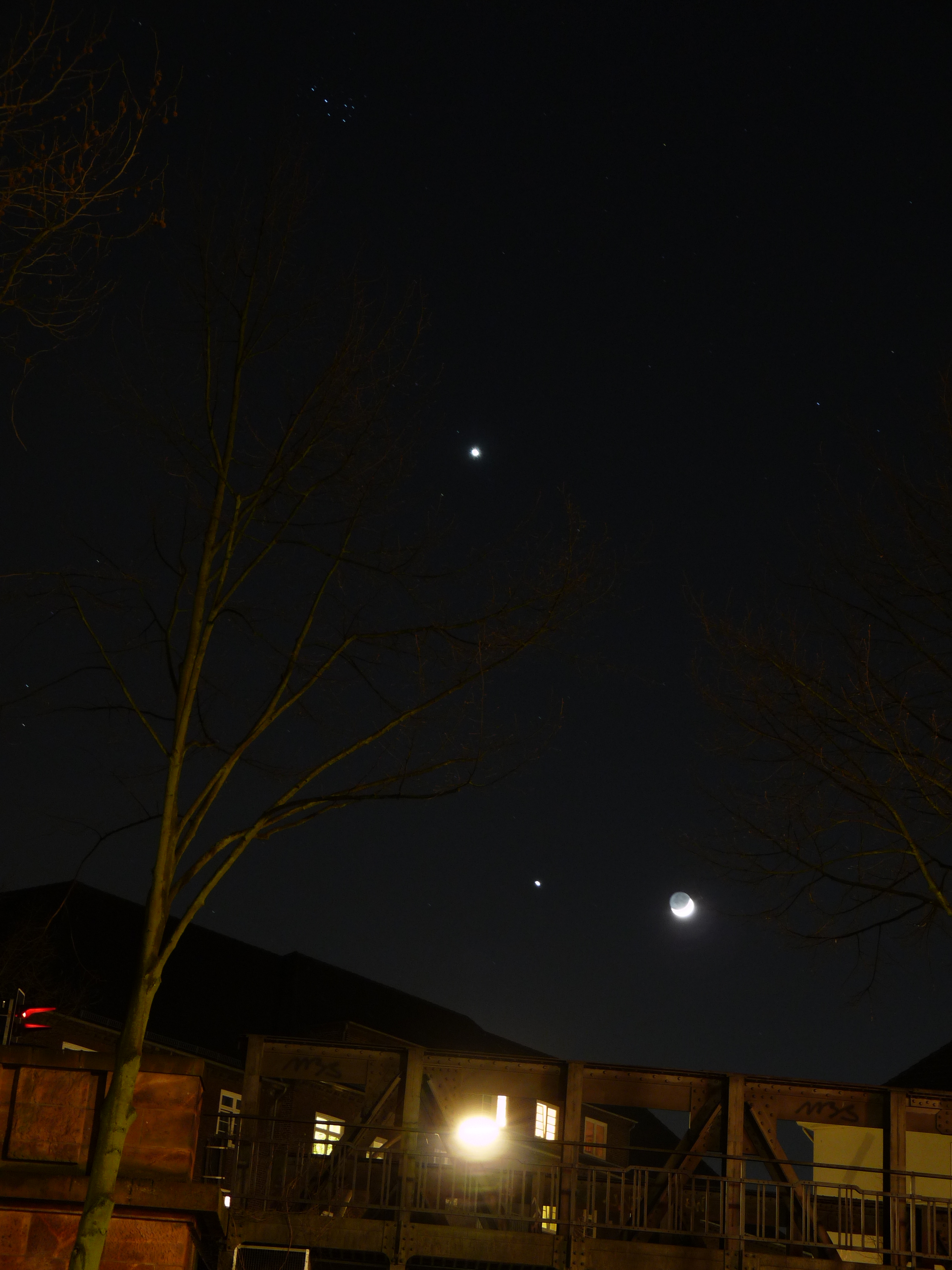 Abbildung 4: Venus, Jupiter und Mond von Hamburg-Eimsbüttel (pCloud: DK_201203256_Venus_Mond.jpg)