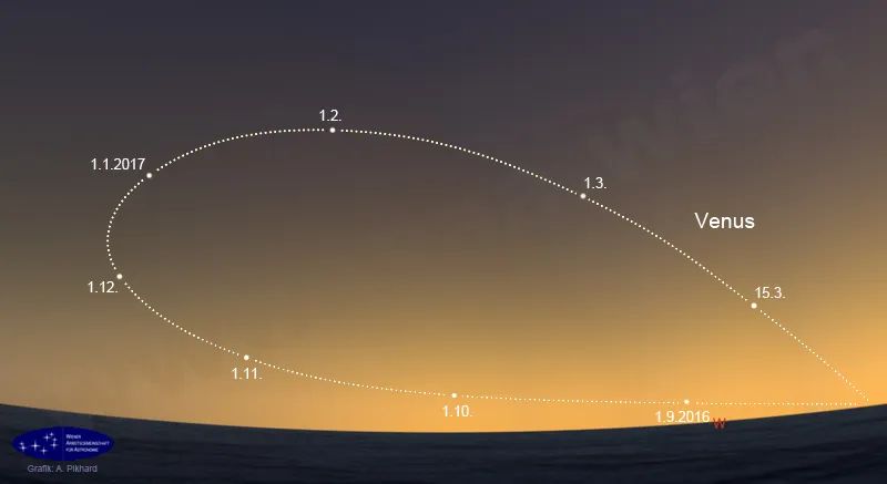 Abbildung 5: Abendsichtbarkeit der Venus in 2017 (Copyright WAA) (pCloud: Venus-ab-201609-201703.jpg)