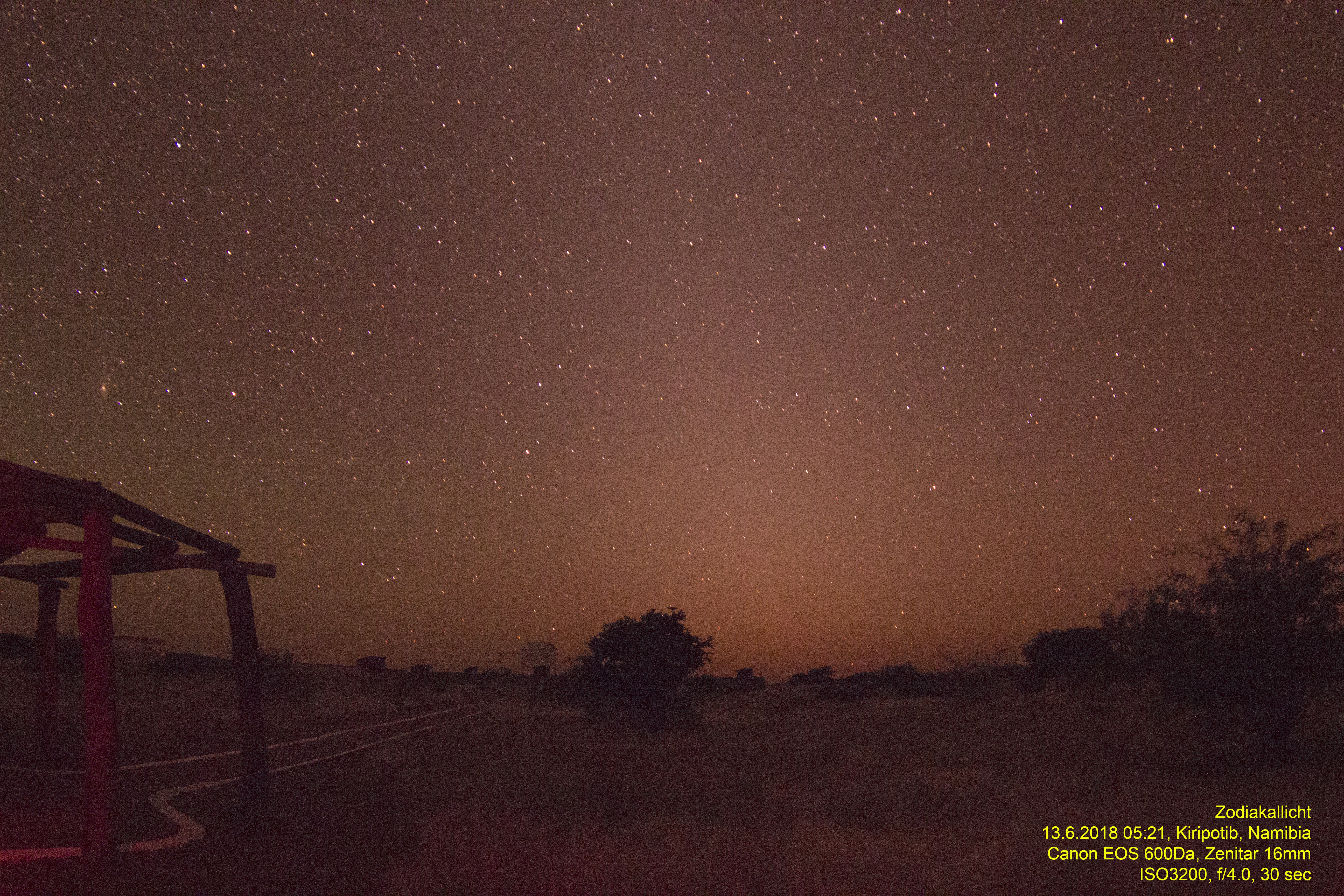Ich konnte am 13.6.2018 morgens früh das Zodiakallicht in Namibia selbst beobachten.