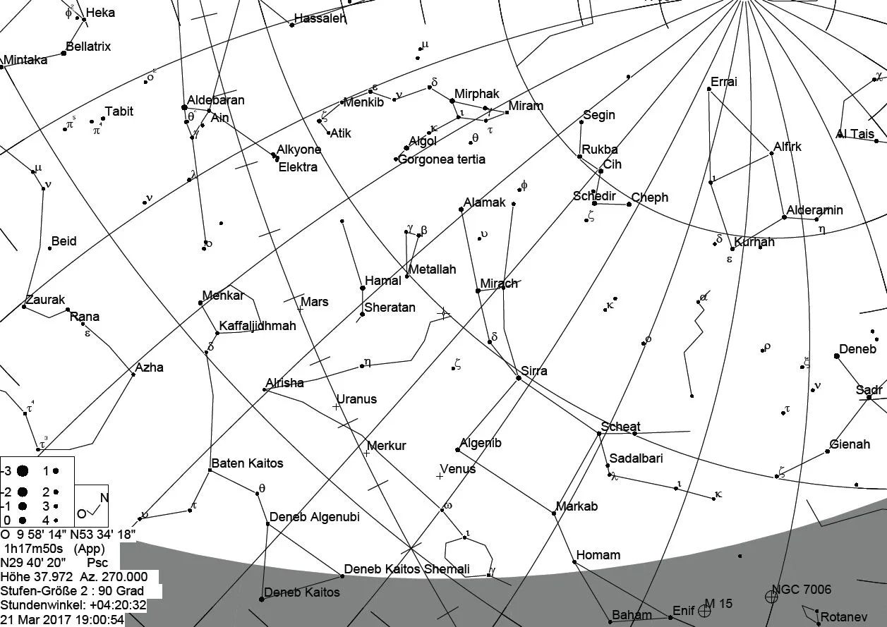Beispiel: Guide zeigt für den 21.3.2017 abends im Westen:
