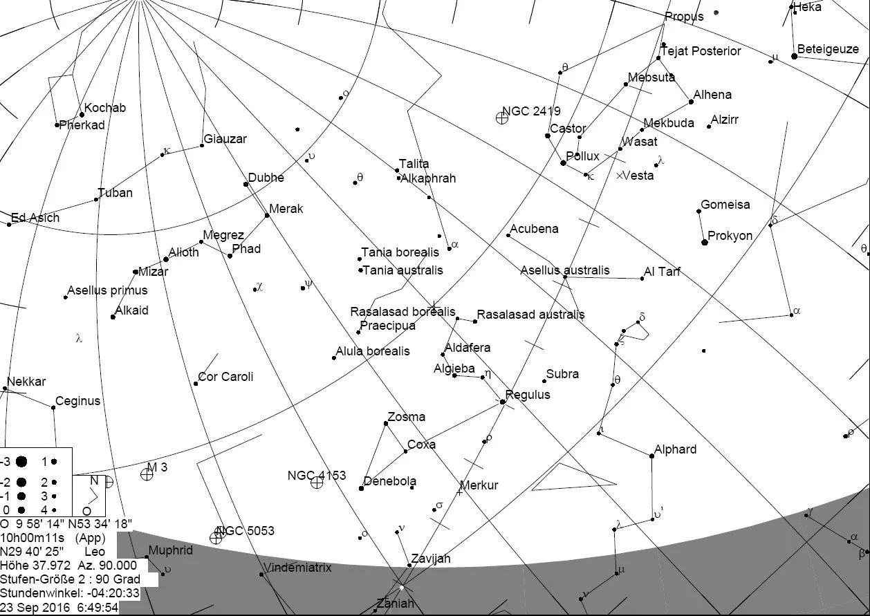 Beispiel: Guide zeigt für den 23.9.2016 morgens im Osten: