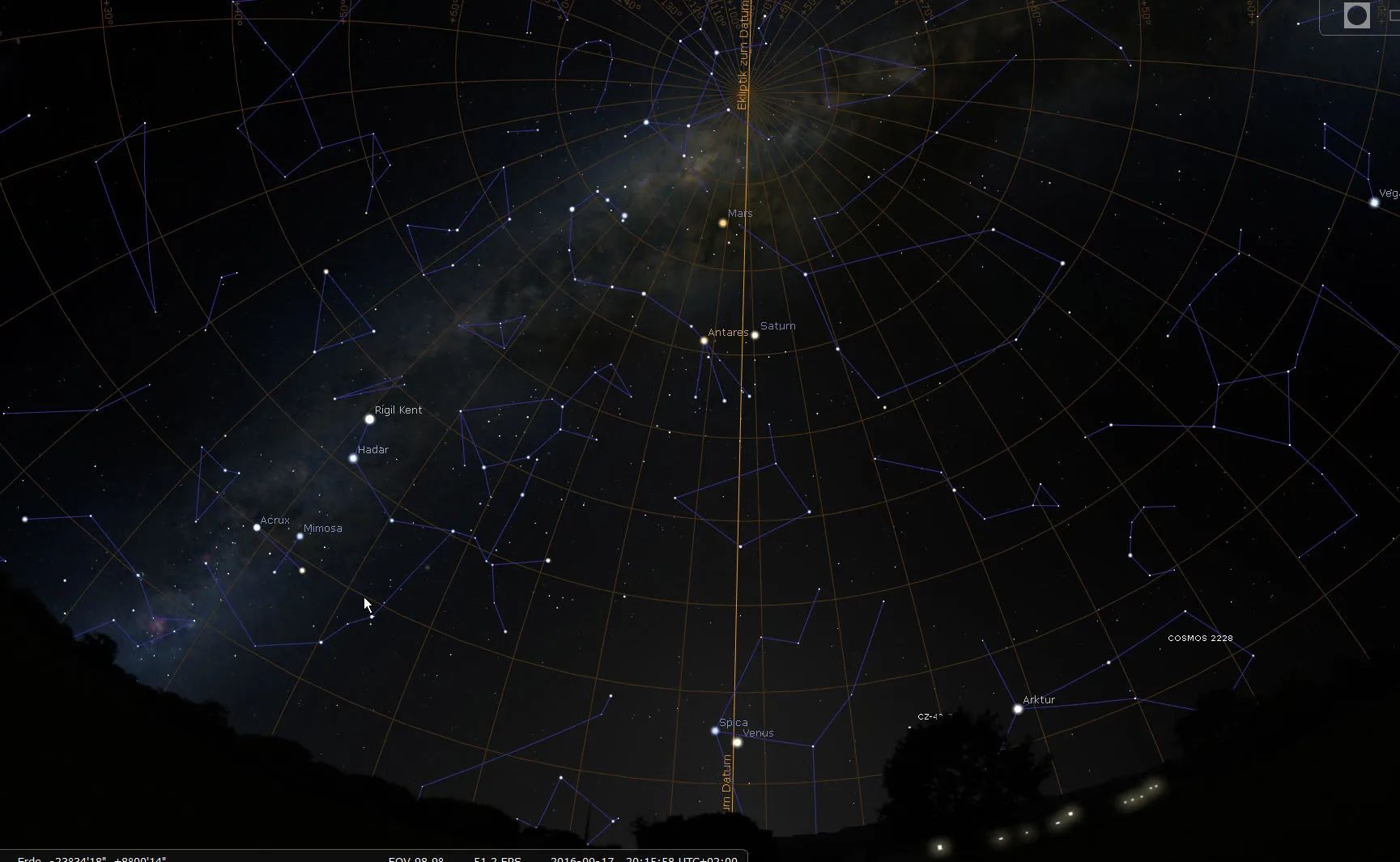 Abbildung 3: Stellarium zeigt die Ekliptik (pCloud: Ekliptik_Tivoli_17.9.2016.jpg)