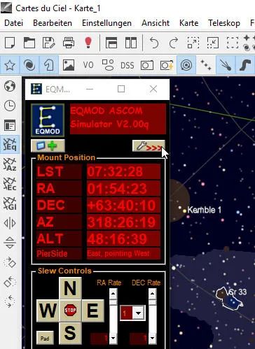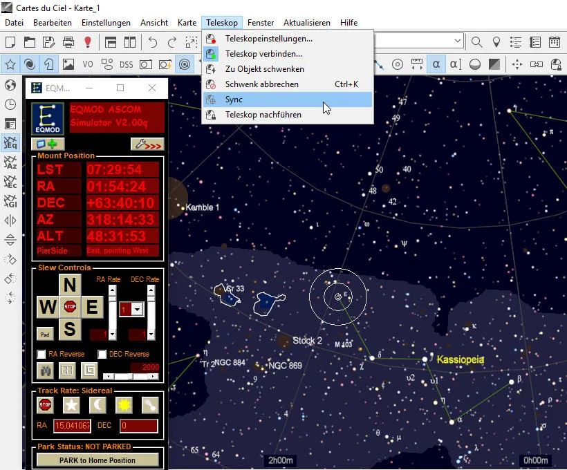 Dann kann ich in der Software Cartes du Ciel auf SYNC drücken.