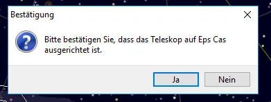 Abbildung 11: Dialogbox “Bestätigung” -> Bitte bestätigen Sie, dass das Teleskop auf Eps Cas ausgerichtet ist. -> Schaltfläche “Ja” (pCloud: Cartes-du-Ciel-14.jpg)