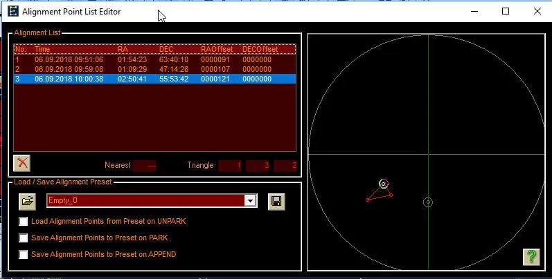 Cartes du Ciel: EQMOD Alignment/Sync Liste der Alignment Points im Detail: