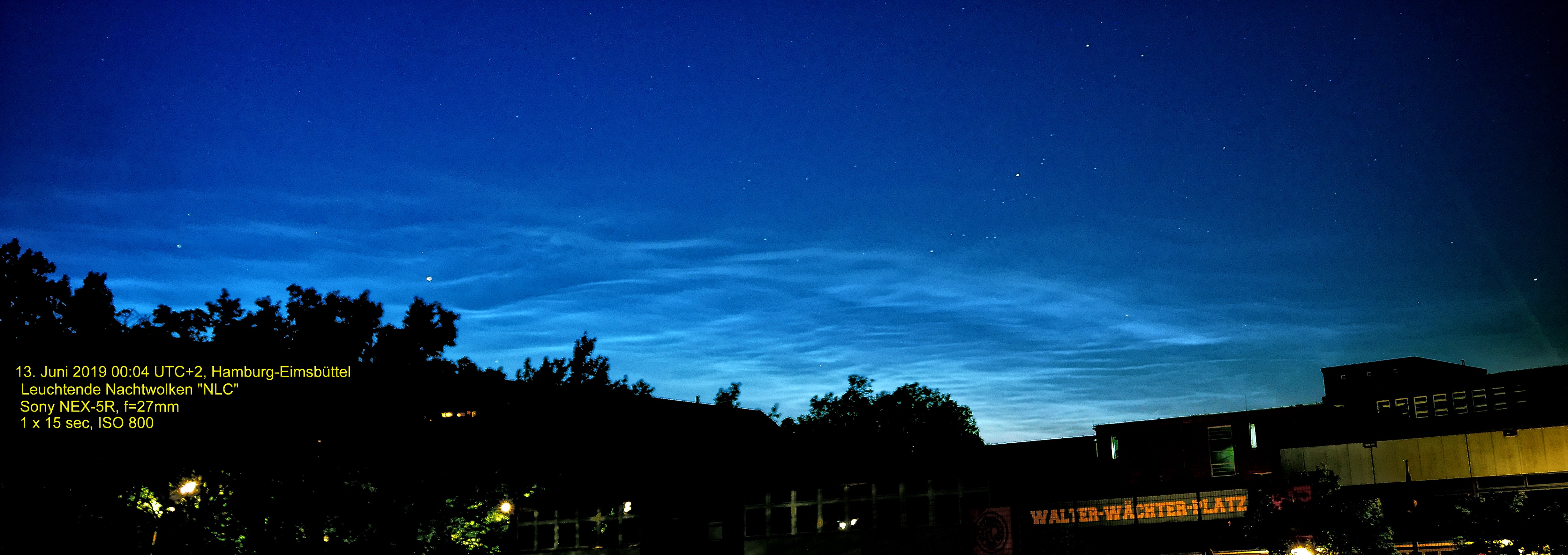 Abbildung 1: Leuchtende Nachtwolken in Hamburg-Eimsbüttel (pCloud: DK_20190620_DSC02062b_beschriftet.jpg)