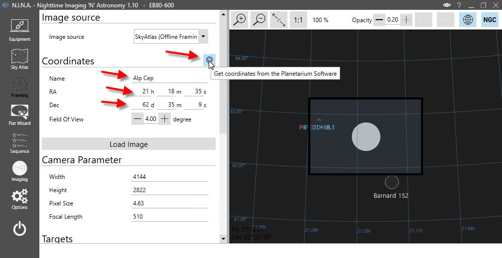 Abbildung 9: NINA Framing Assistent: Target Coordinates (pCloud: NINA-Workflow-36.jpg)