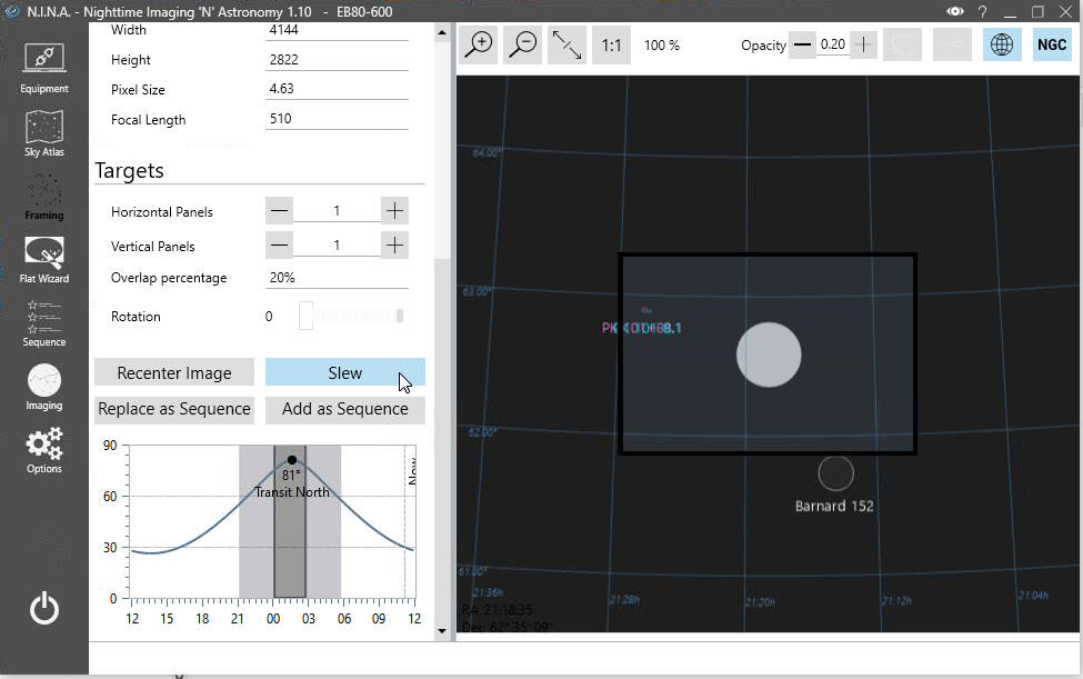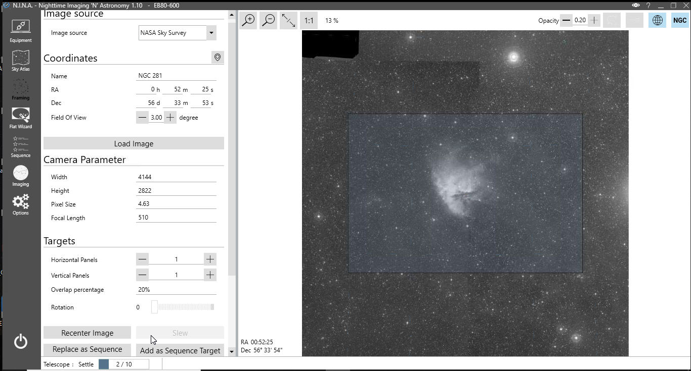 Abbildung 13: NINA Framing an NGC281 (pCloud: NINA-Workflow-44.jpg)
