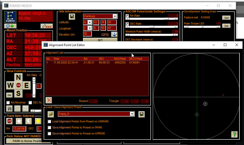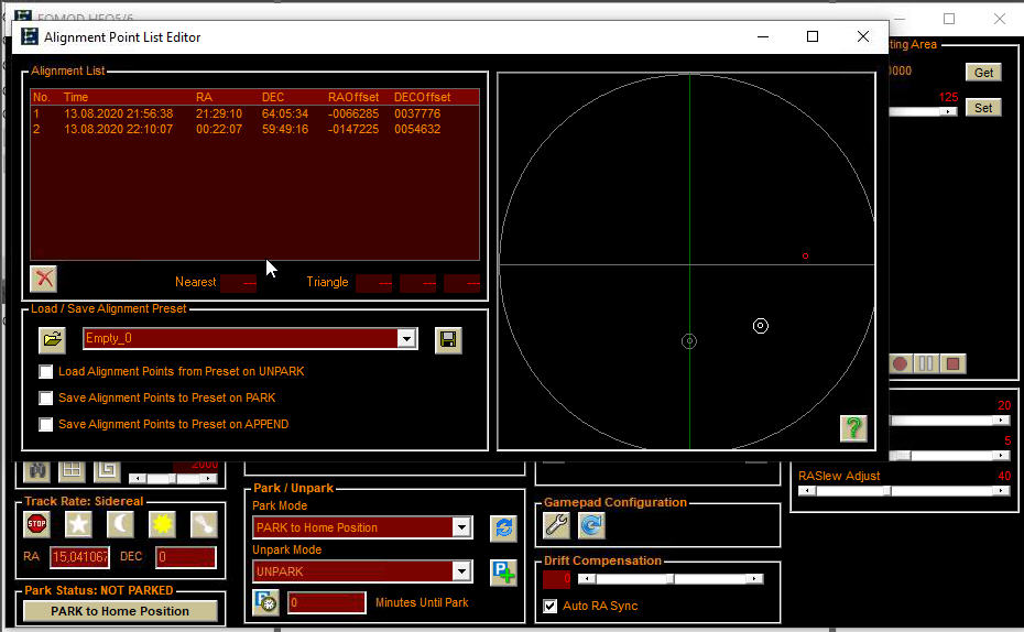 - Koordinaten des geplanten Alignment Points besorgen (z.B. aus Stellarium oder Cartes du Ciel)