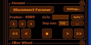 Wenn der Connect zum Focuser erfolgreich hergestellt werden konnte, wechselt die Beschriftung der Schaltfläche von “Connect Focuser” auf “Disconnect Focuser”…