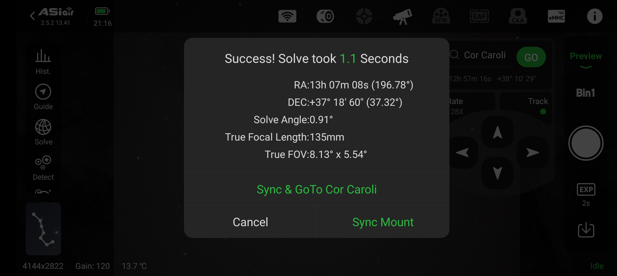 Siehe auch: Plate Solving, Fokussieren mit der ASIAIR Plus