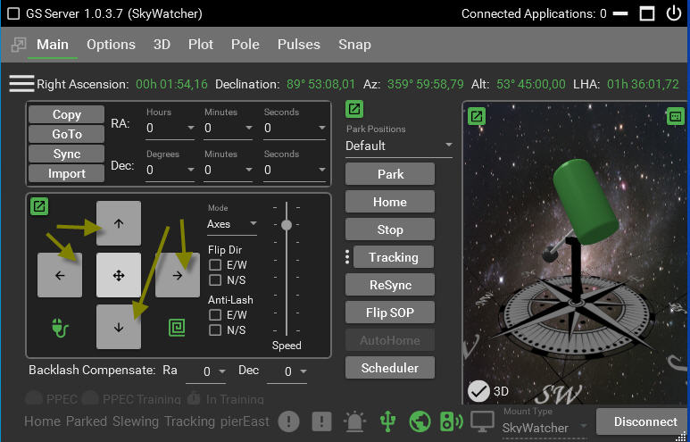 • N.I.N.A.: Equipment -> Telescope -> ASCOM.GS.Sky.Telescope