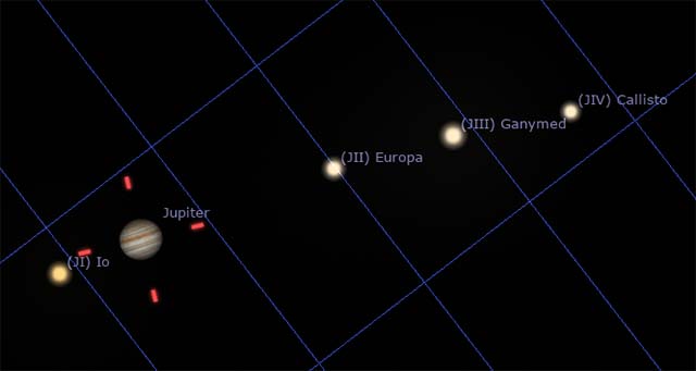Er entdeckte 1610 die vier größten Monde des Jupiter: Io, Europa, Ganymed, Kallisto. Derzeit (2023) sind 92 Monde bekannt, die Jupiter umrunden.