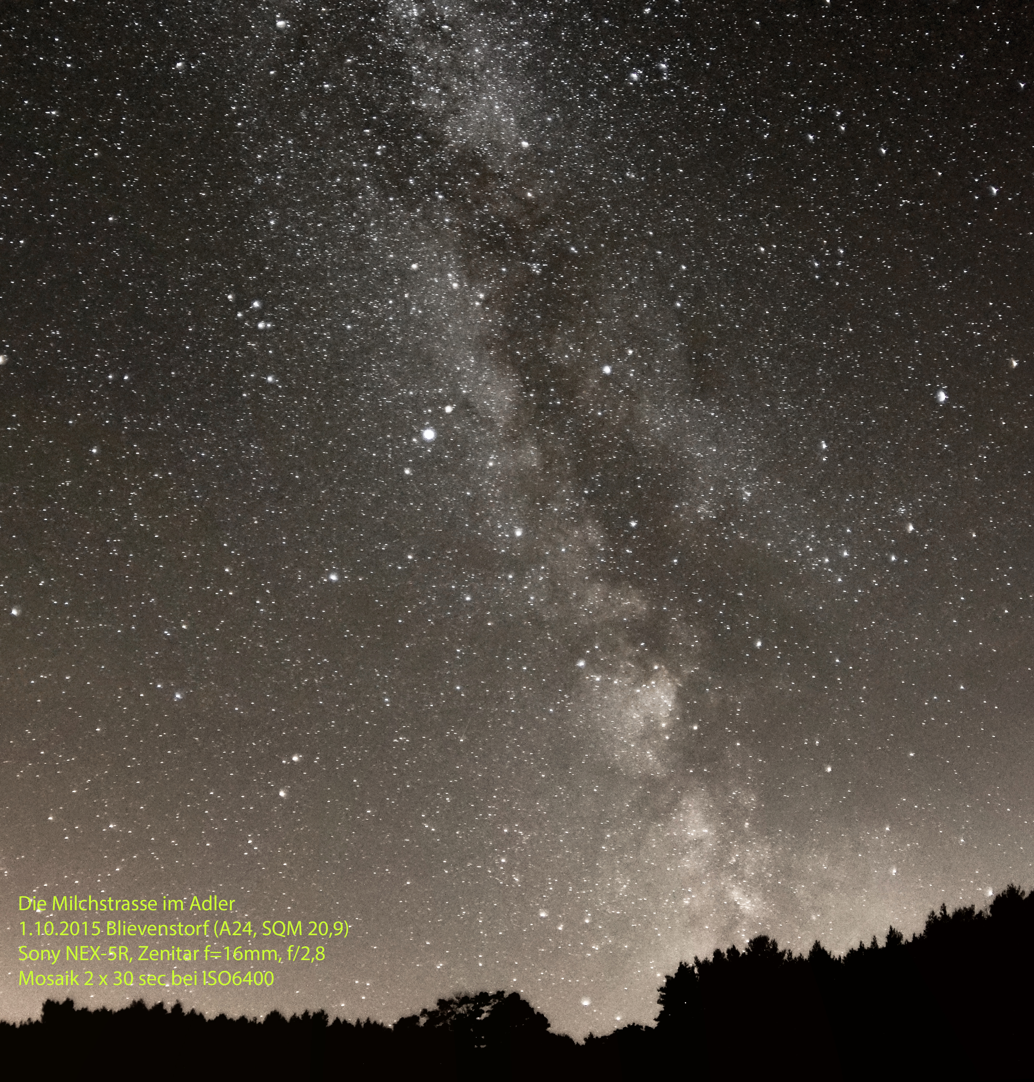 Suburban sky – Milchstraße im Zenit schwach erkennbar