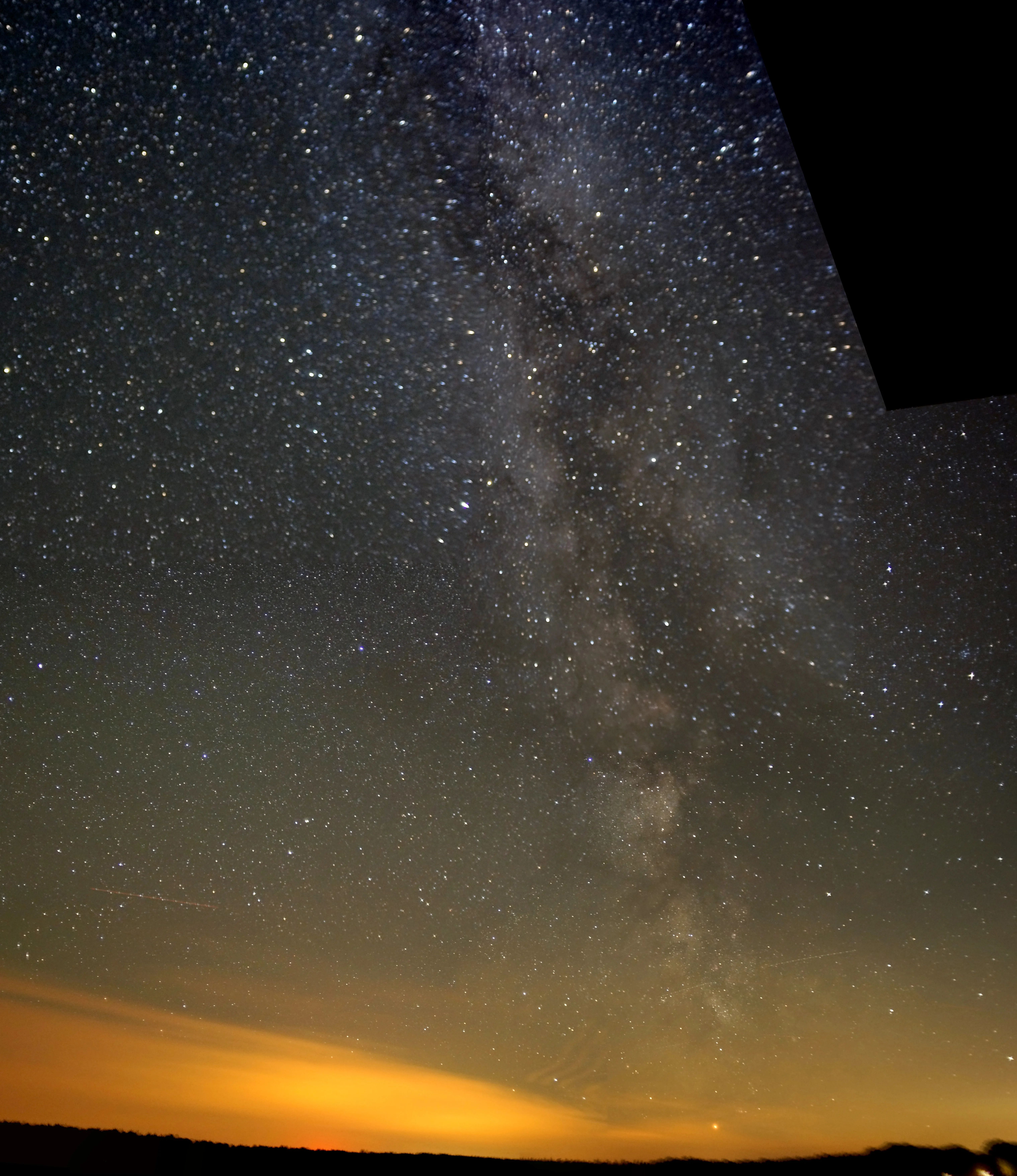 Rural / Suburban transition – Milchstraße sichtbar mit geringem Kontrast, Wolken im Zenit hell