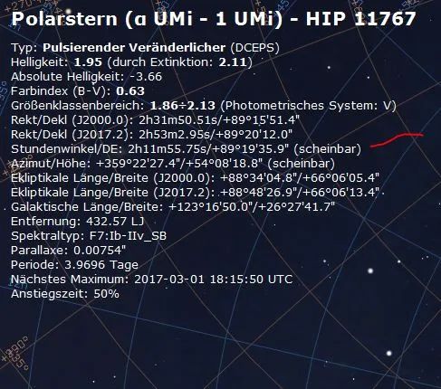 Kochab (102) – Beta UMi – westlich vom Meridian