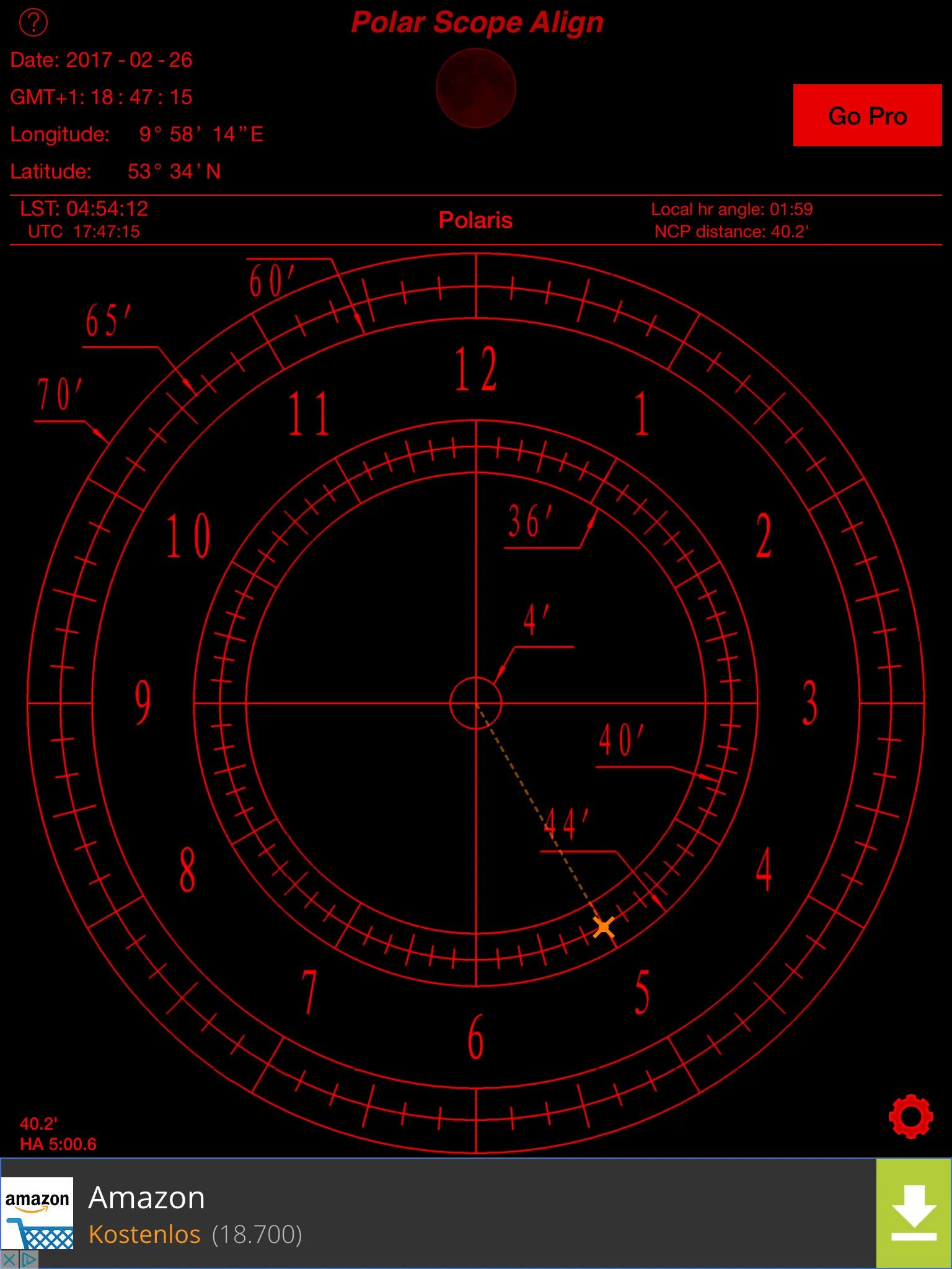 Von dem Astro-Kollegen Frank auf Kiripotib bekam ich den Tipp, doch einen digitalen Neigungsmesser zu verwenden, um die Polhöhe im Vorwege genau richtig einzustellen.