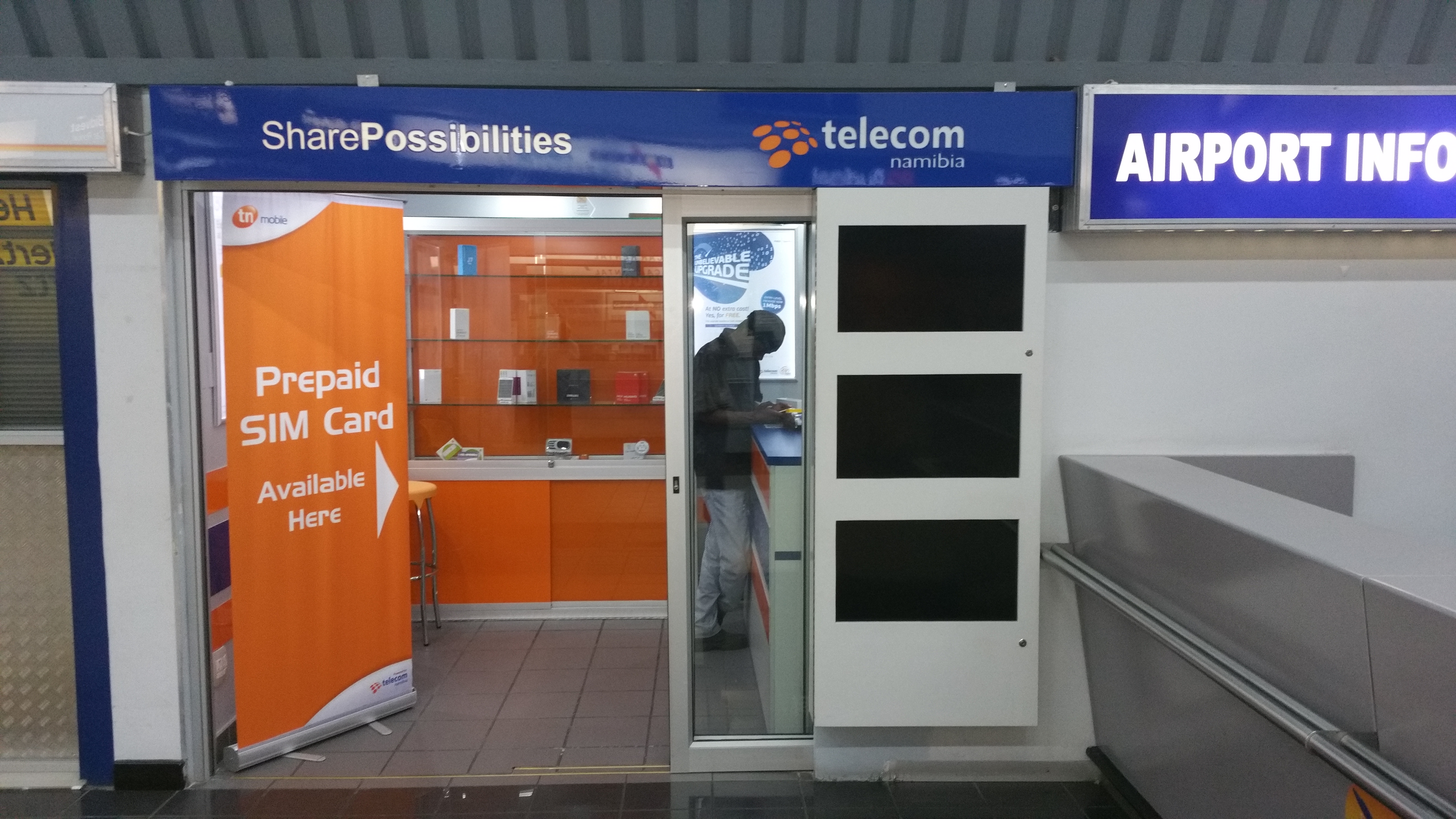 When you arrive in Windhoek at the international Airport Hosea Kutako, you will find after arrival in the airport terminal TWO telecom shops: