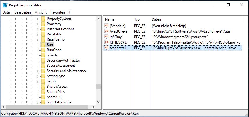 Die Standard-Installation (Version 2.8.8) veranlasst das Starten des TightVNC-Service über einen Registry-Eintrag: