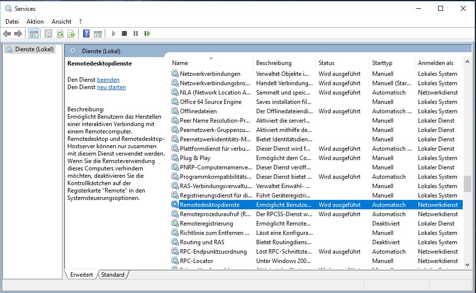 Wenn dieser Windows-Dienst “Remotedesktopdienste” (interner Name: TermService) nicht gestartet ist, können keine Remote-Verbindungen zu diesem Computer aufgebaut werden.