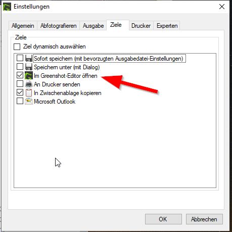 Abbildung 1: Greenshot –> Einstellungen –> Ziele (pCloud: Greenshot_2019-04-19 14_38_36.jpg)