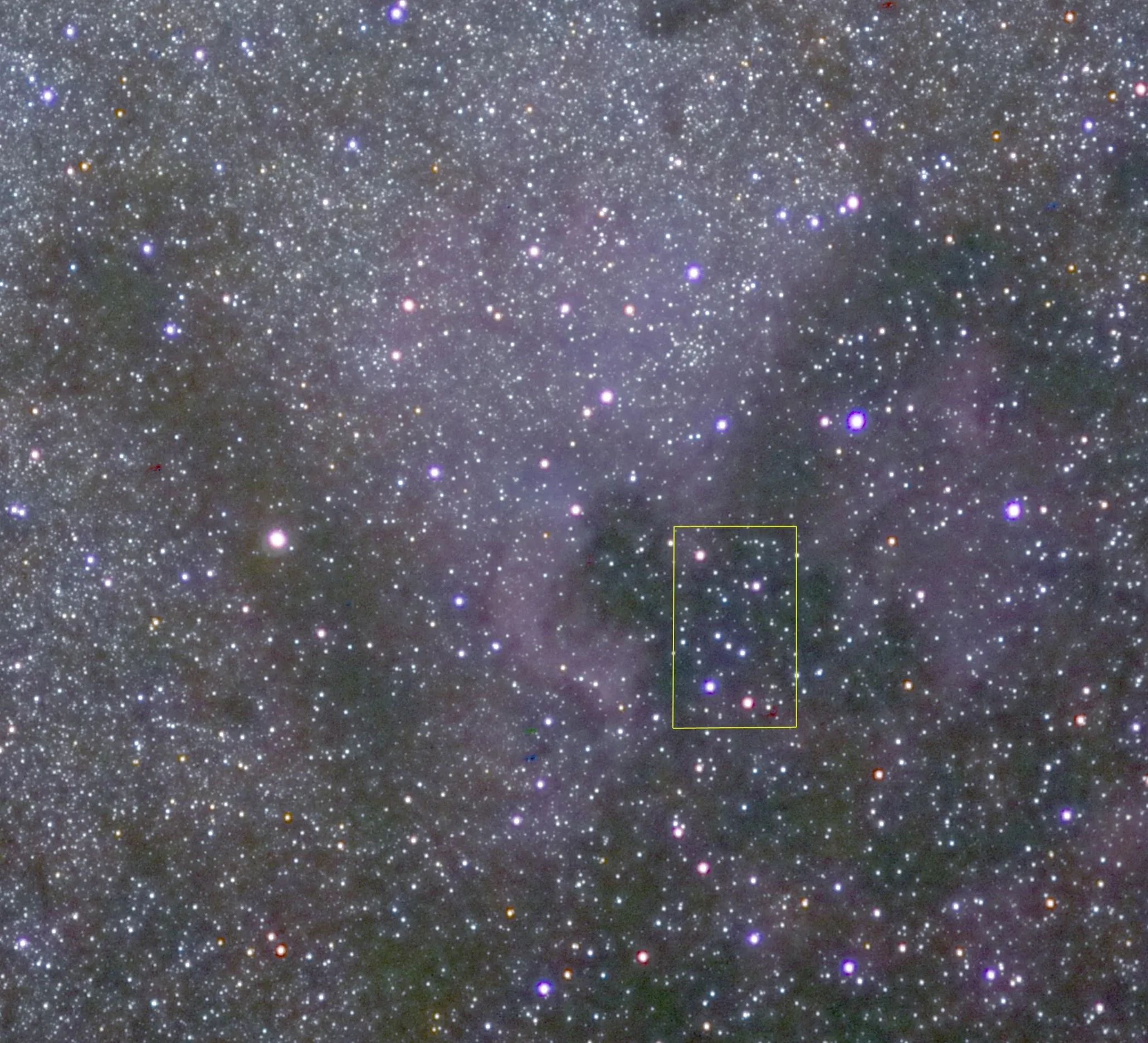 - Zeigt die Große Magellansche Wolke (Bildfeld:17 x 26 Grad, Südpol in Richtung 8 Uhr)