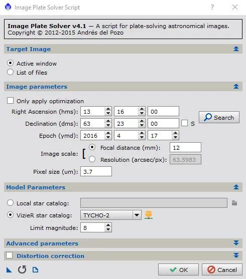 Parameter setzen für Image Plate Solver Script…