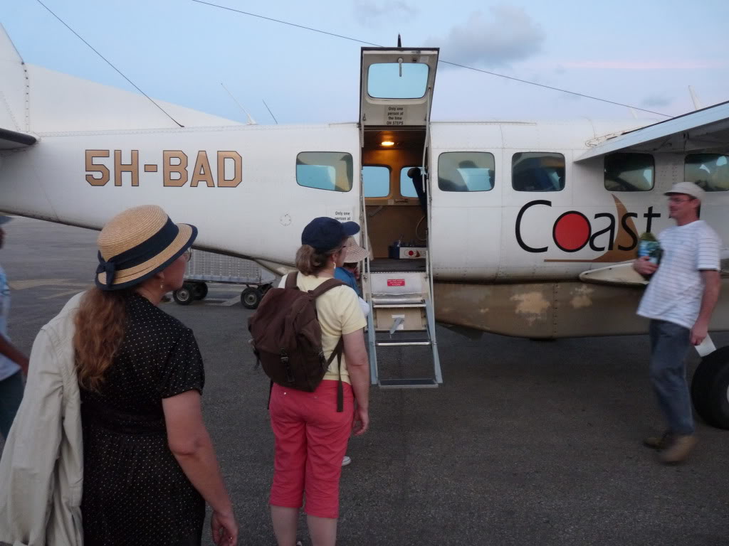 Kurz vor 18:00 Uhr sind wir am Flughafen Zanzibar, aber unser Flieger ist noch nicht da. Es entsteht ein leichtes Chaos, da die Kommunikation mit der Charterflug-Gesellschaft COSTAL nicht so einfach ist. Aber schließlich kommt eine Maschine, die uns postwendend nach Dar zurückbringt. Das war etwas kritisch, weil der Flughafen Zanzibar um 19 Uhr schließt.