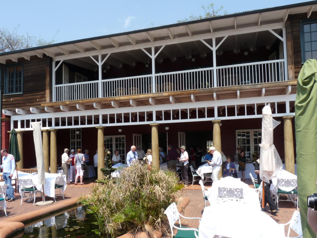 Kurz vor 12 Uhr fahren wir dann in Capital Park ein, der Zentrale von Rovos Rail. Man kann sich hinsetzten, wird aber gleich zu einem kleinen Rundgang über das Gelände aufgefordert, wo wir alte Dampflokomotiven, Eisenbahnwagen und zu guter letzt den letzten Dampfkran Afrikas sehen können, der nach seiner Wiederherstellung vor der Terrasse aufgestellt werden soll.