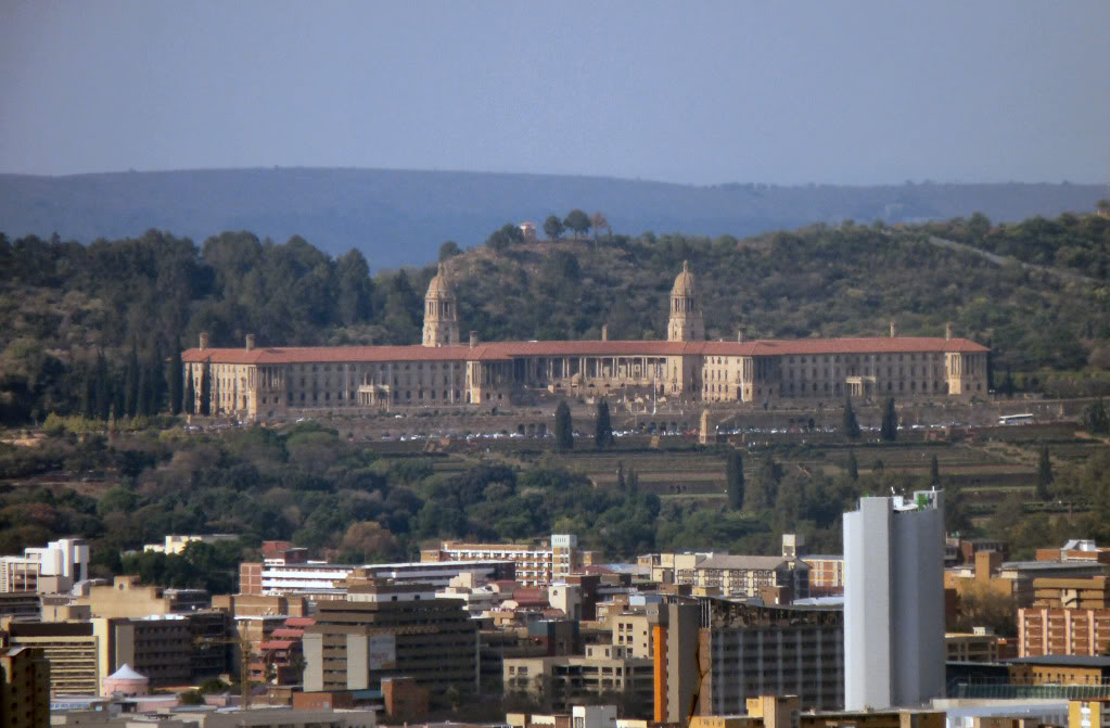 Afrika 2009: Union Building – Das Union Building in Pretoria ist so gross, dass man es nur von der Ferne ganz auf’s Bild bekommt. Dies ist vom Voortrekker Monument aus fotografiert