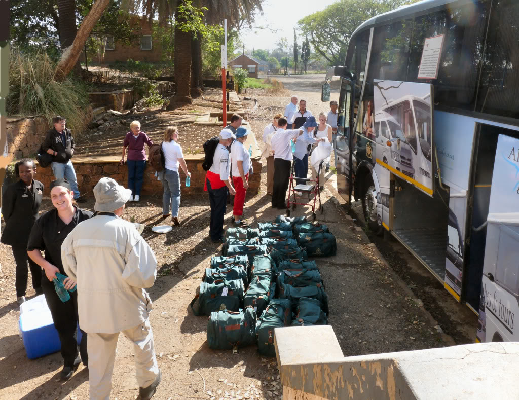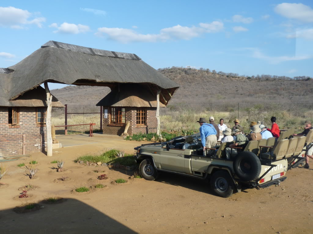 In Zeerust steigen wir in einen Bus um. Mit leichtem Gepäck für zwei Übernachtungen fahren wir zur Tau Lodge.