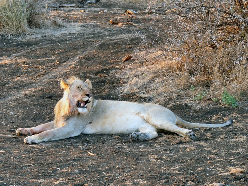 Afrika 2009: Die erste Pirschfahrt am Nachmittag ging schon zu den imposanten Loewen