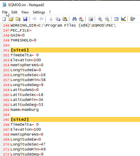 Dort stellen wir die Nummer die Observatory Location (geografische Breite und Länge) ein.