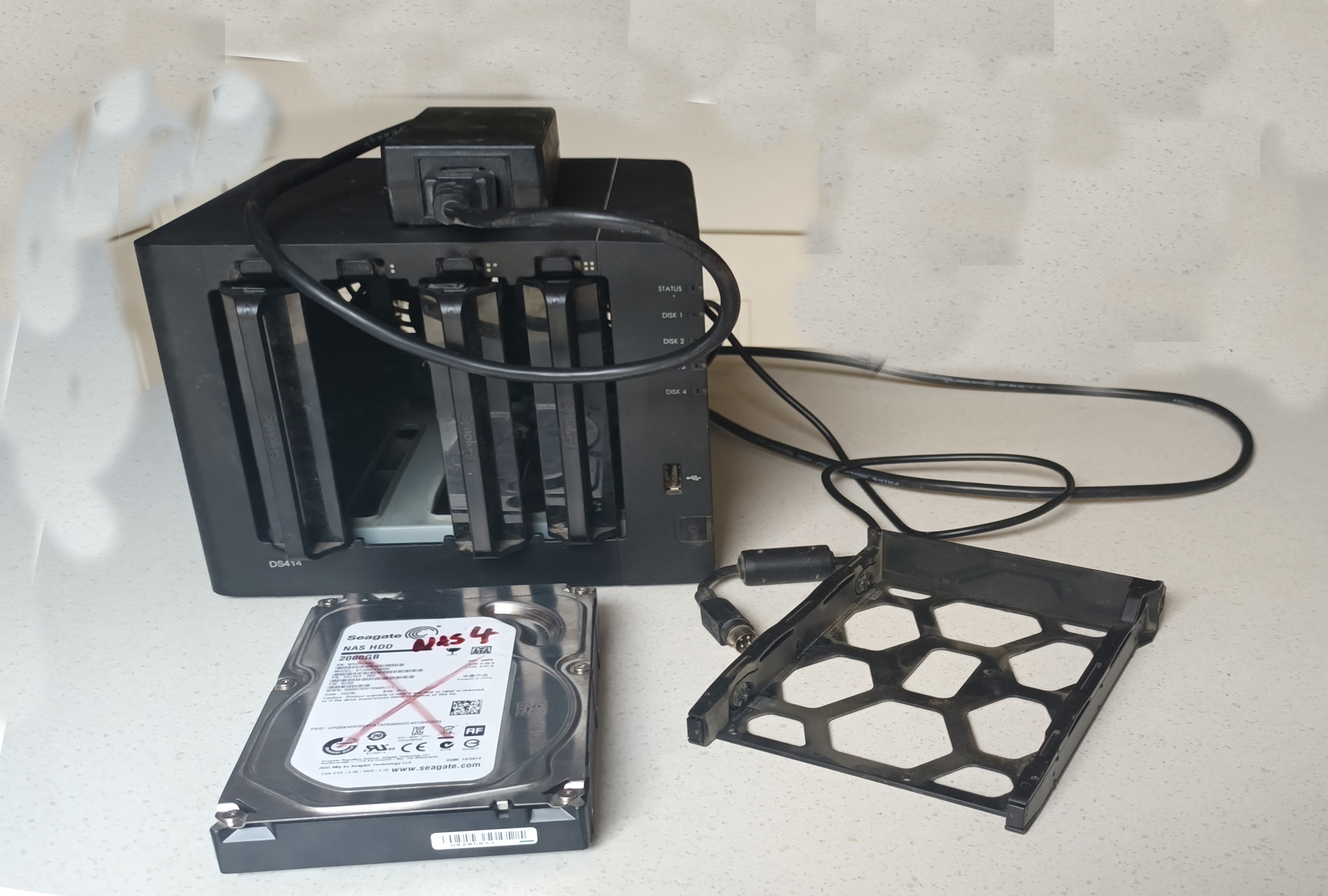 Abbildung 2: NAS-Speicher mit alten Festplatten (pCloud: 20250607_NAS_102054.jpg)