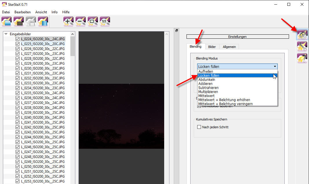 Abbildung 2: StarStaX Blending Modus (pCloud: StarStaX-02.jpg)