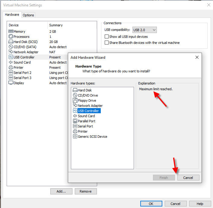Genau genommen könnte die Fehlermeldung von VMware auch bedeuten, dass nur ein USB-Controller virtuell einrichtbar ist, wobei aber evtl. mehrere Geräte (Devices) an diesem einen USB-Controller angeschlossen werden könnten…