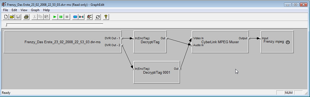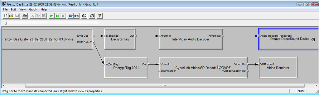 Schritt 1: dvr-ms-Datei mit GraphEdit geöffnet (File > Render Media File… )
