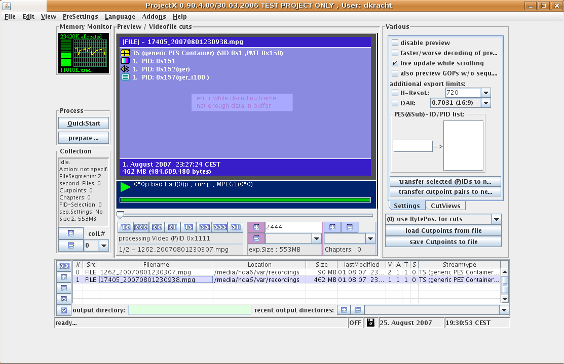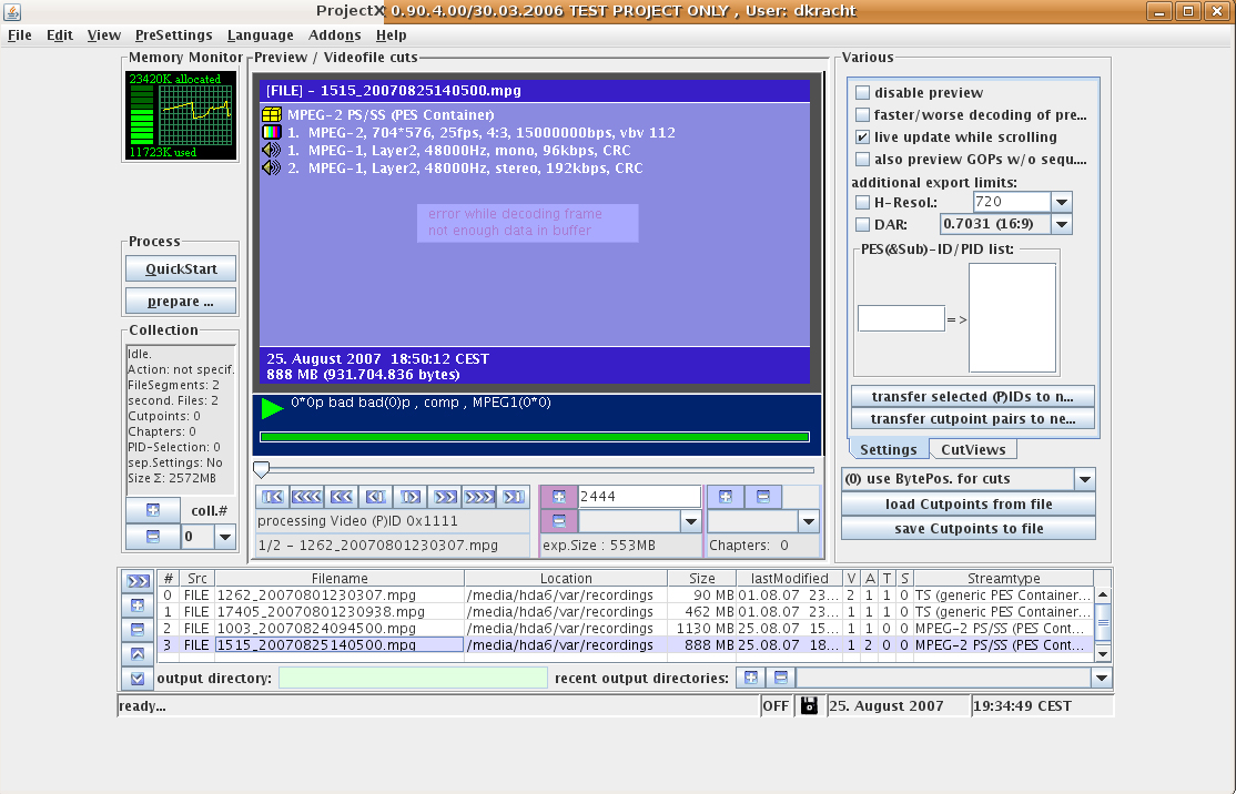 Den Typ eines MPEG-Streams können wir mit Hilfe den Programms ProjectX leicht ermitteln: