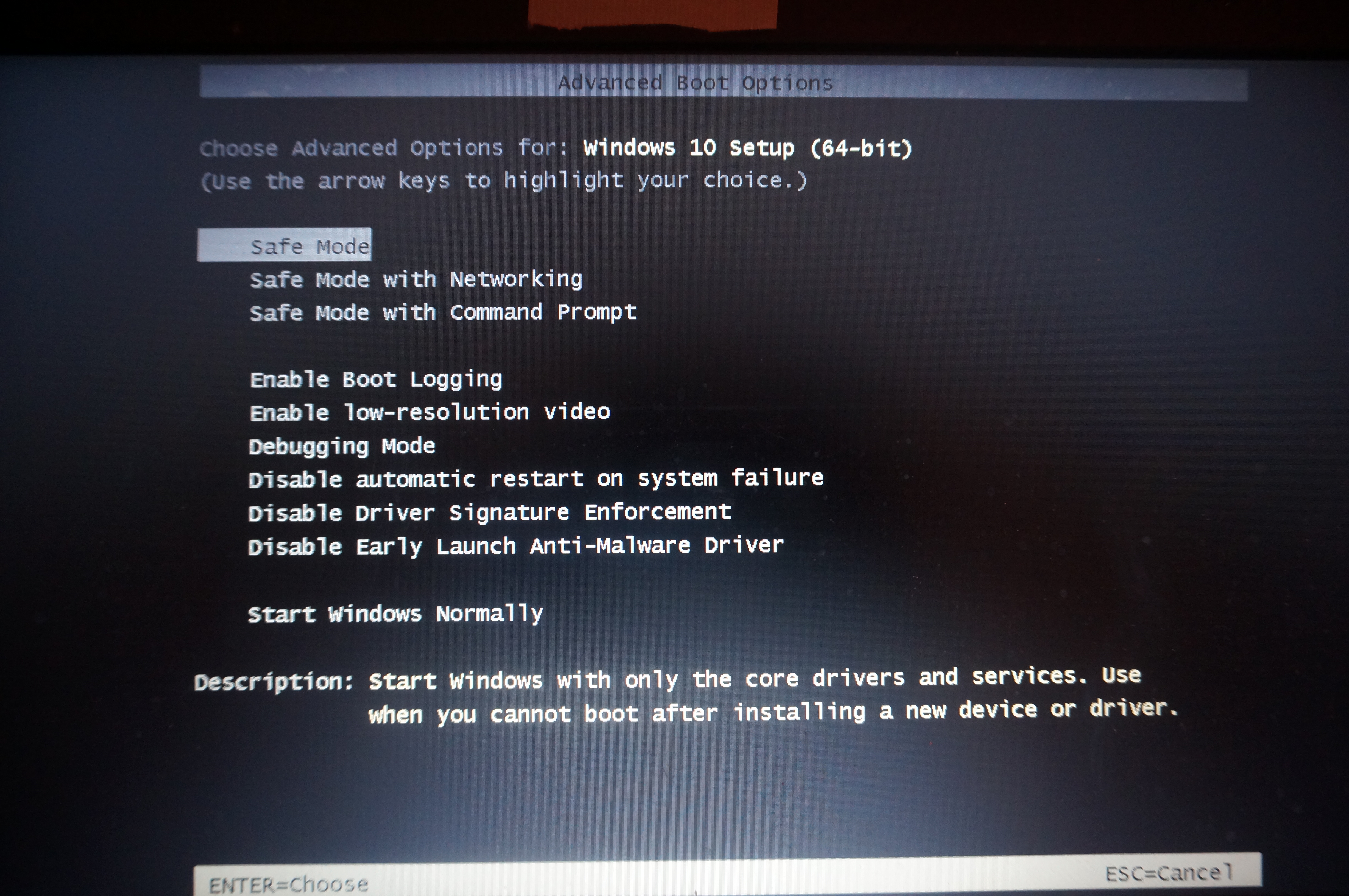 Und nun kann ich endlich den “Abgesicherten Modus” (Safe Mode) auswählen….